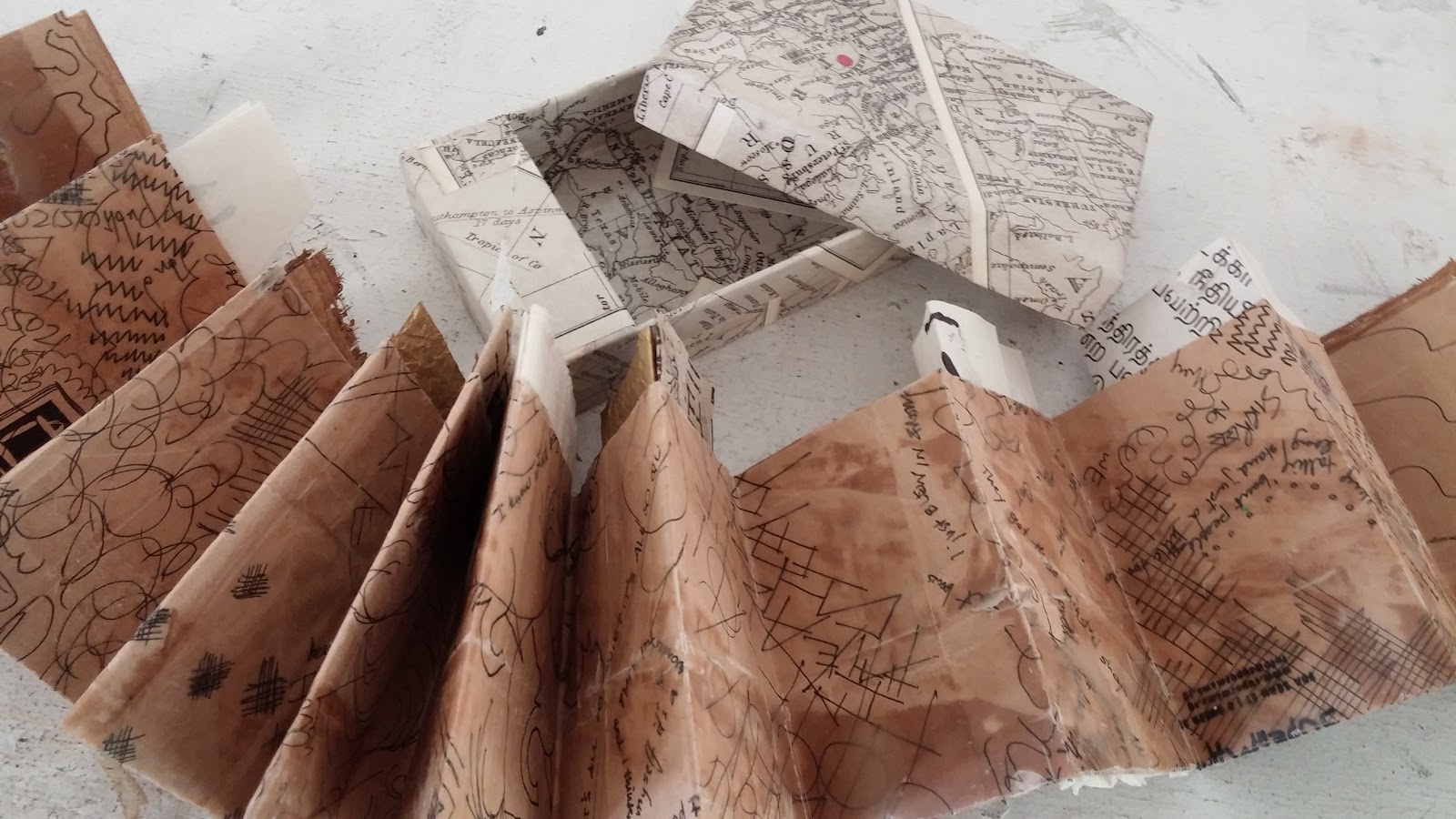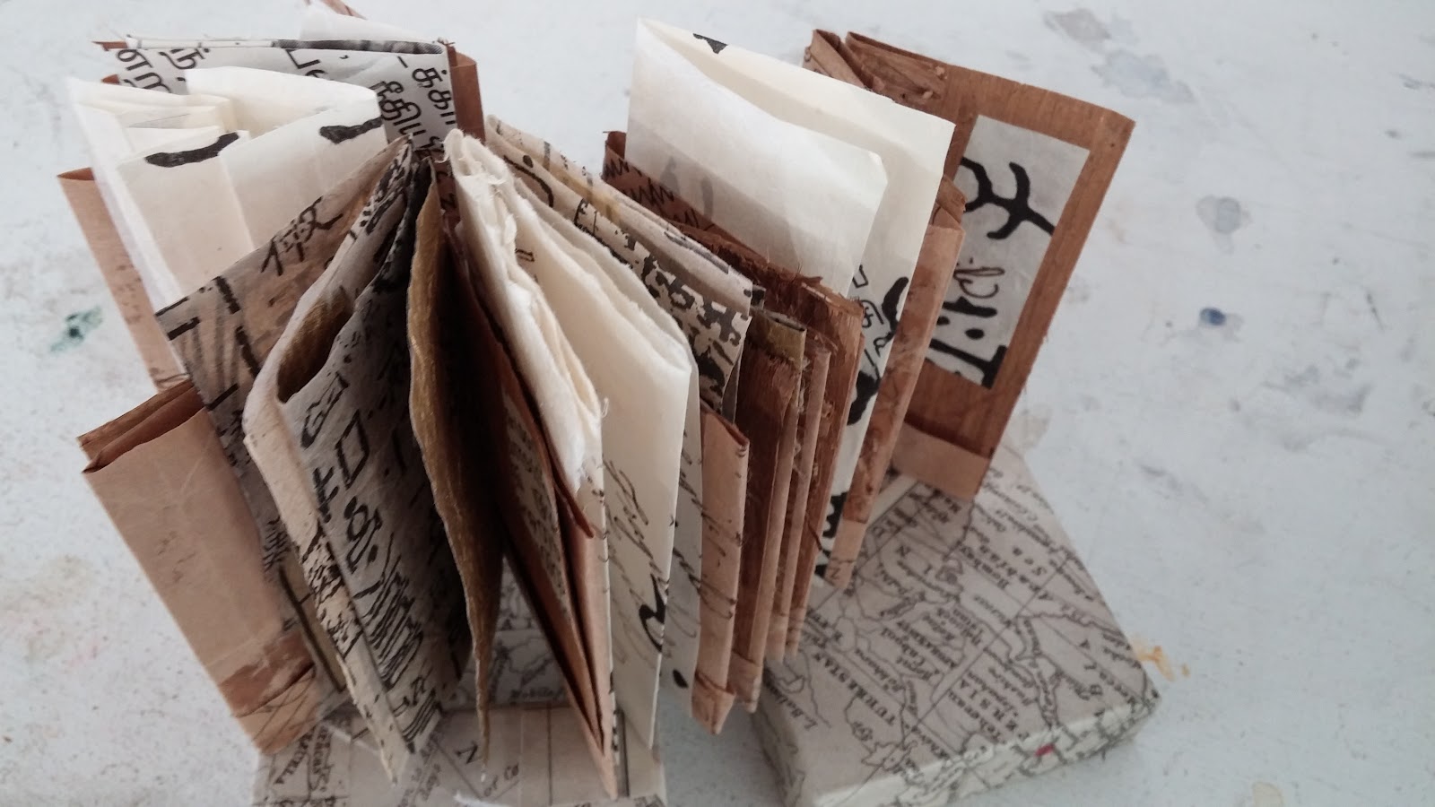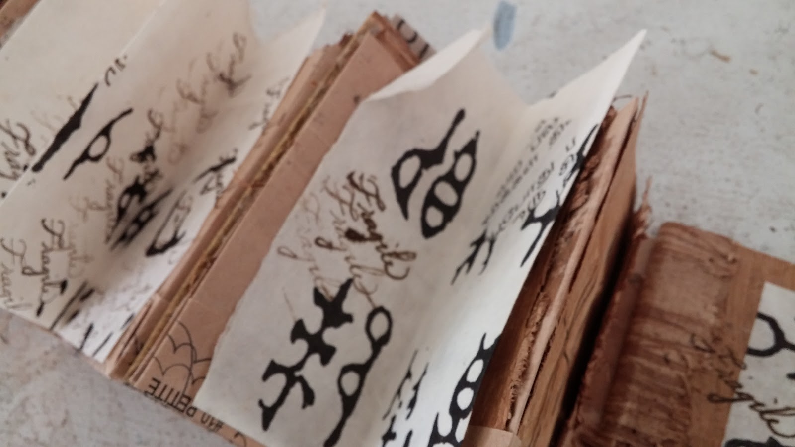 All of these are glued inside the concertina pages. They are inserted in the pockets, but they don’t come out (the book was too unstable).