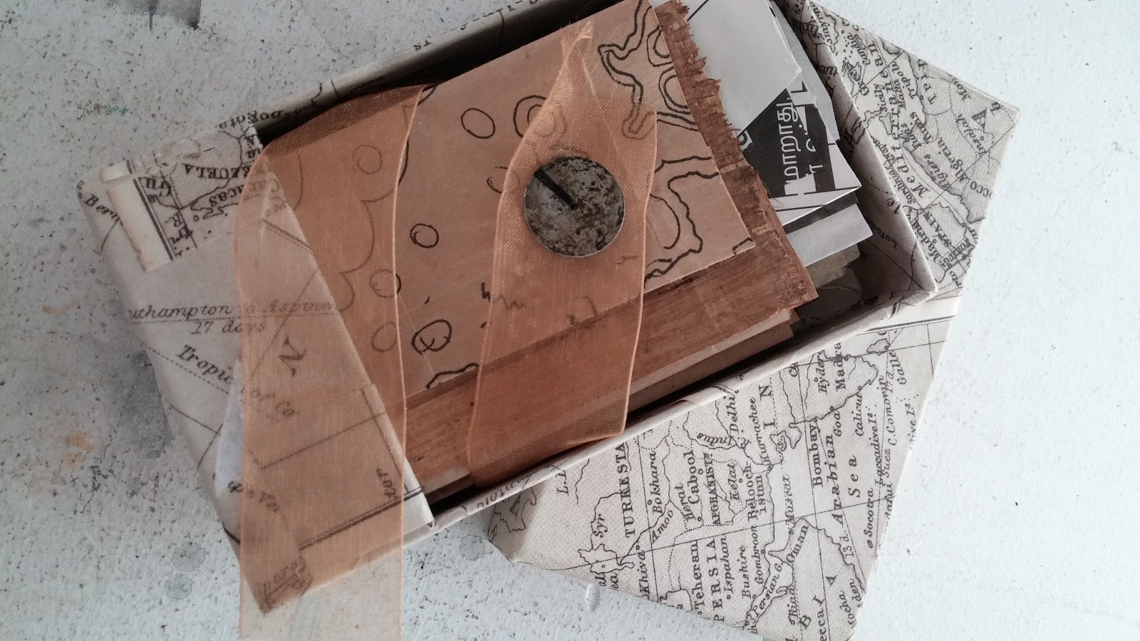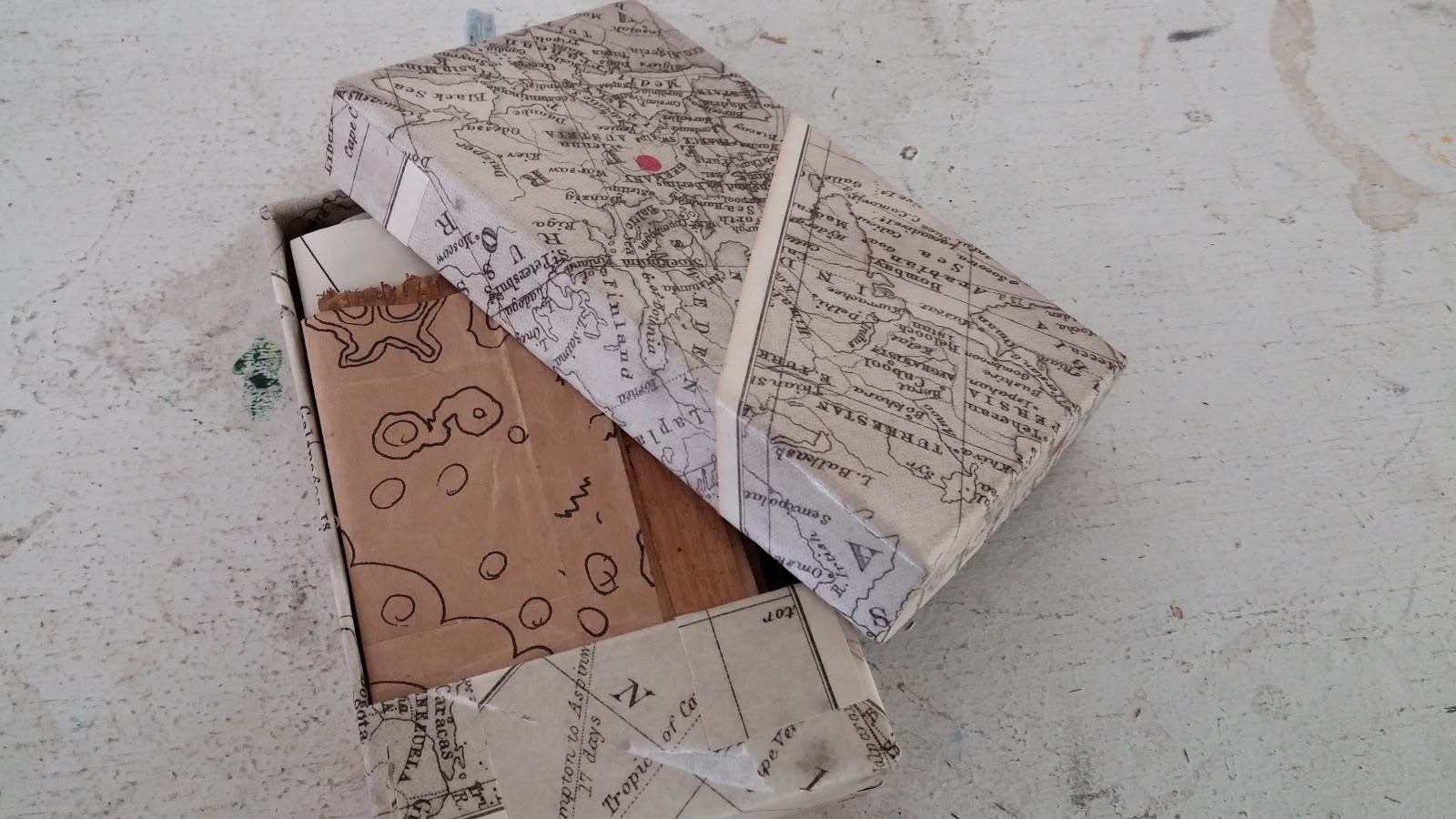 The box is covered in some maps from an ING Direct Christmas promotion (they sent a little book showing how Christmas was celebrated around the world.