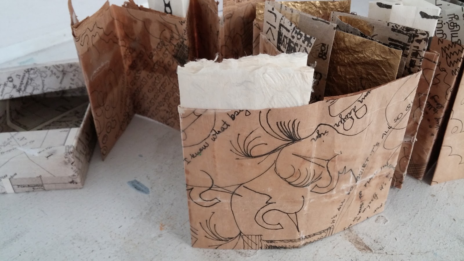 I made the brown paper bag into a concertina with pockets on the bottom.