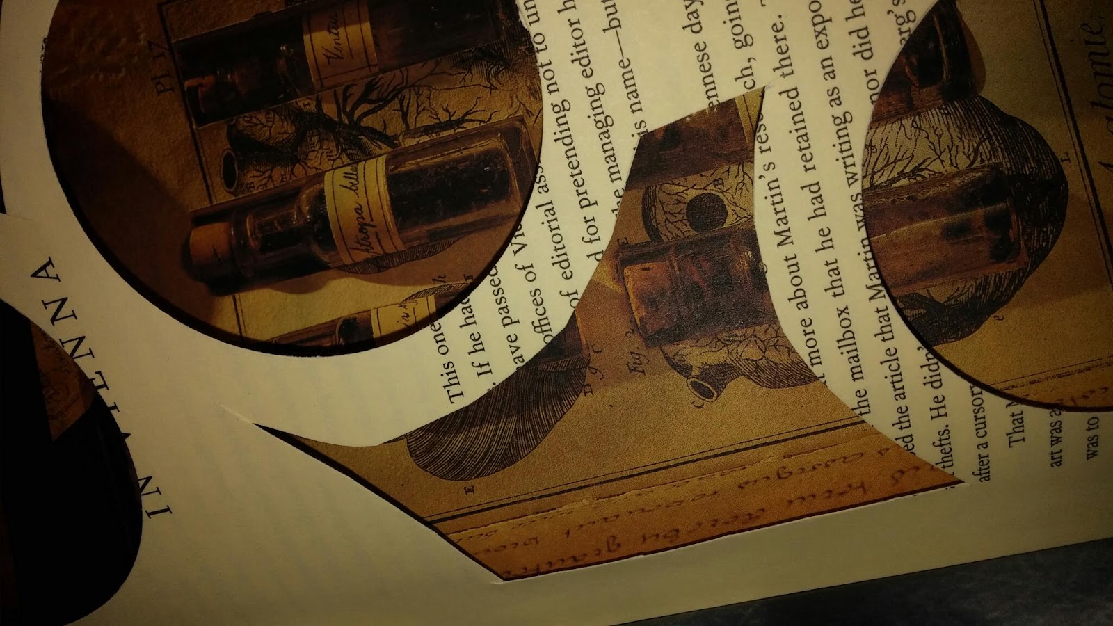 The original book, The Sensualist, had beautiful illustrations, but i wasn’t enamoured of the narrative. So i altered the book! colored pencil, ink, a little sewing, some cutting and ripping. extra words from the WB Yeats poem (tread softy because you tread on my dreams).