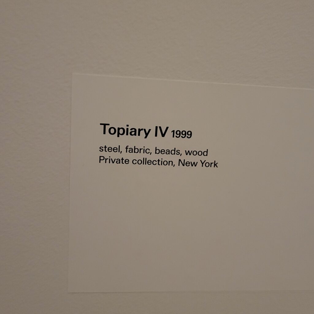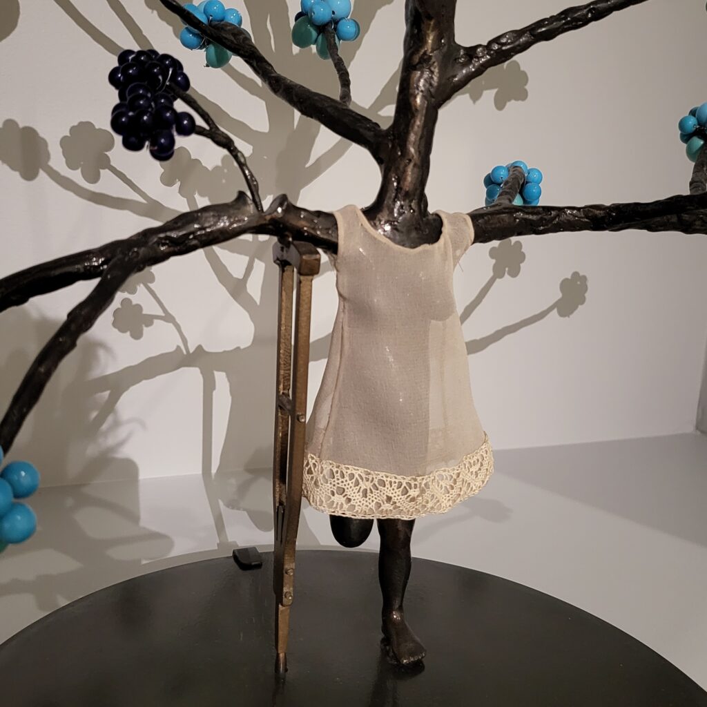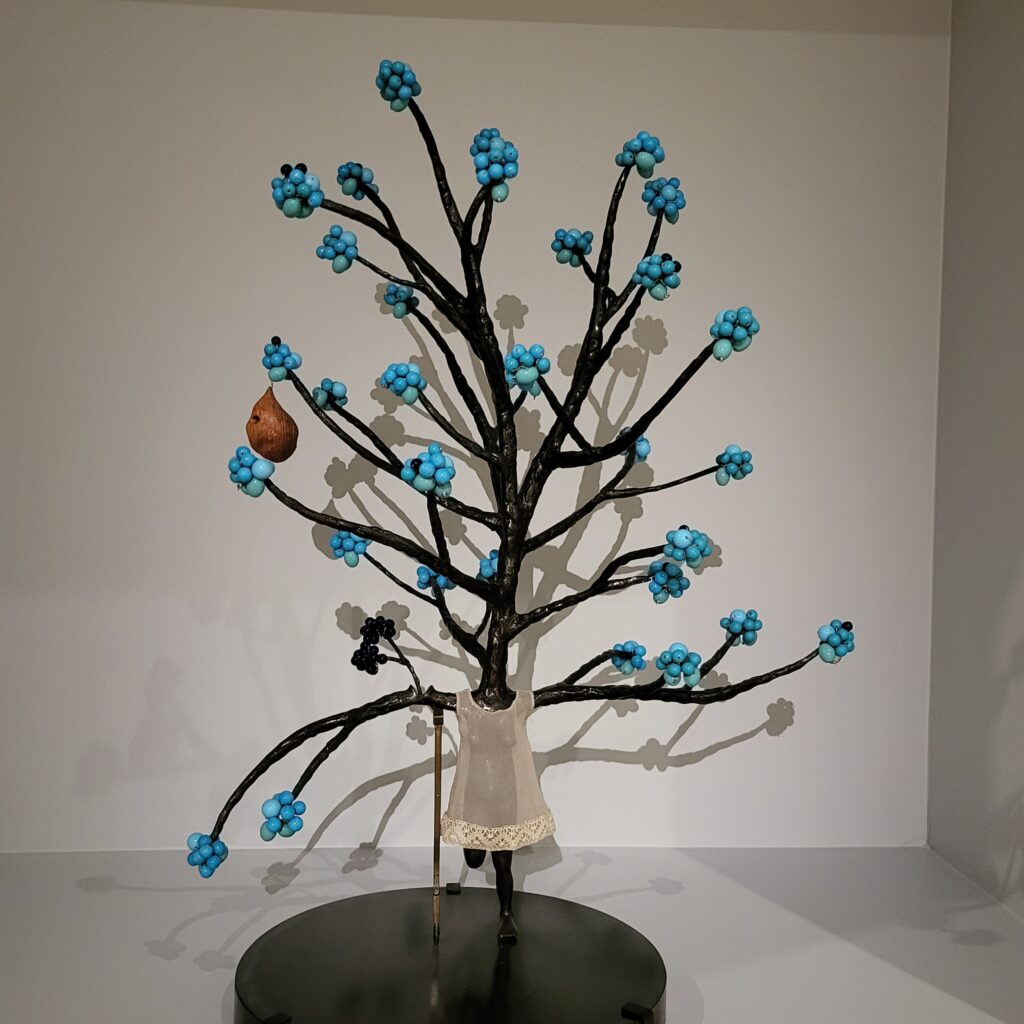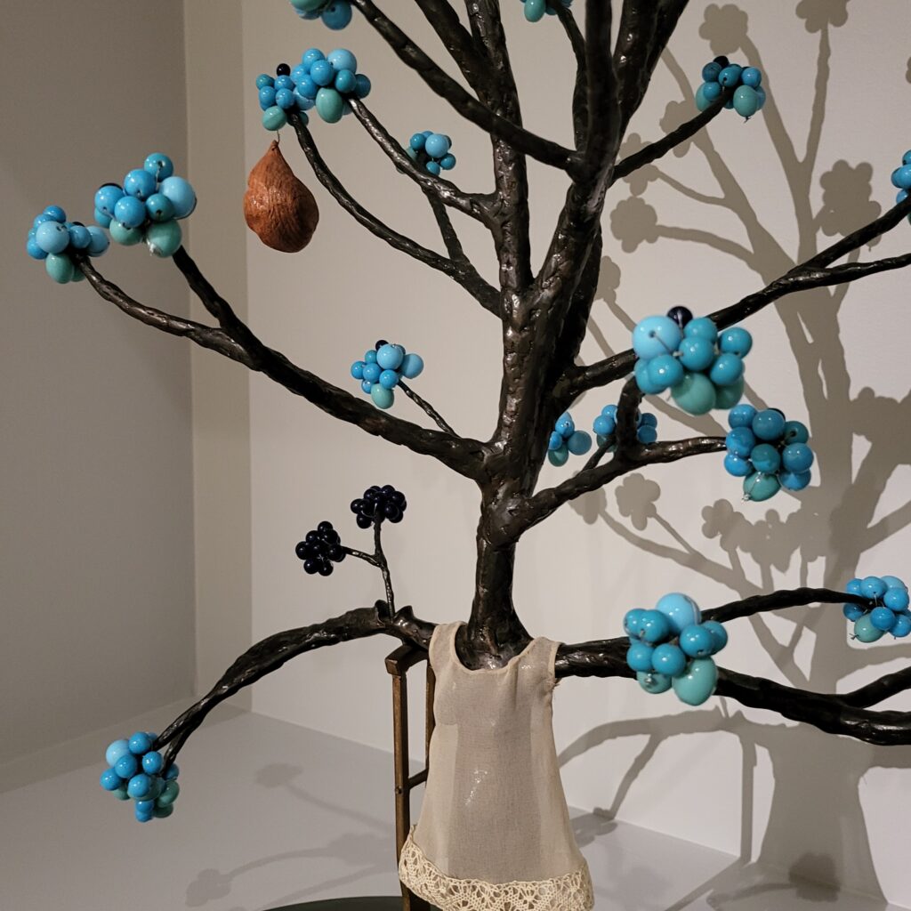 I adored a small work of a tree – Topiary IV – i could make something similar – i think i’ve held onto the ikea earring tree I altered years ago, (now wondering where I could possibly have stashed it). the more I looked at it the more heartbreaking it is – the girl/dress stuck in the tree, the crutch keeping the trees branches up, the lack of leaves (but are they blossoms on the end). Very beautiful.