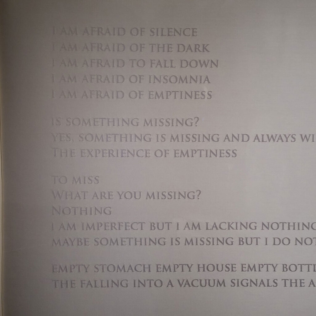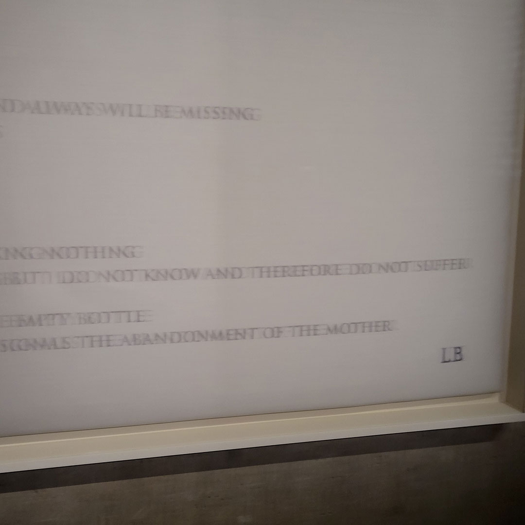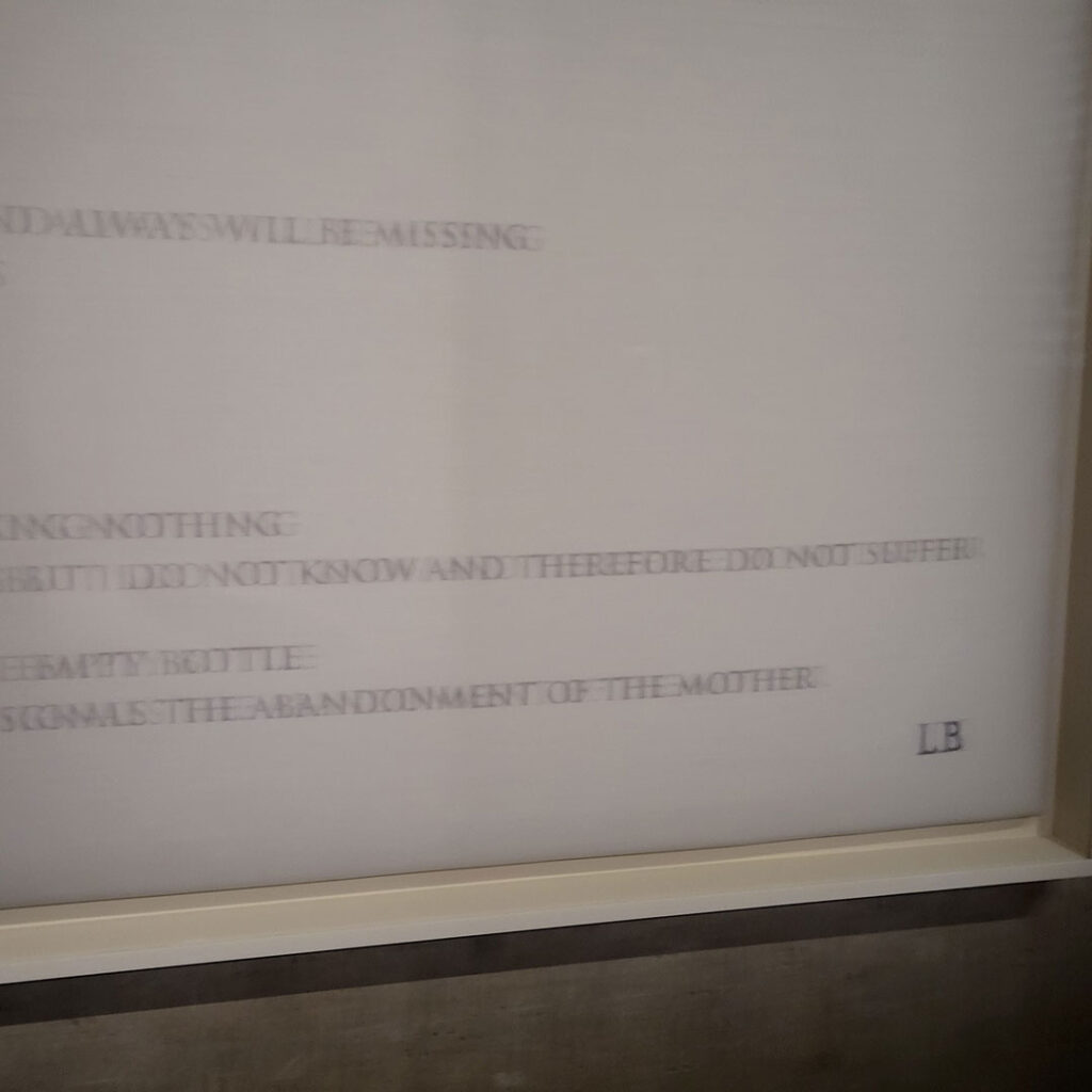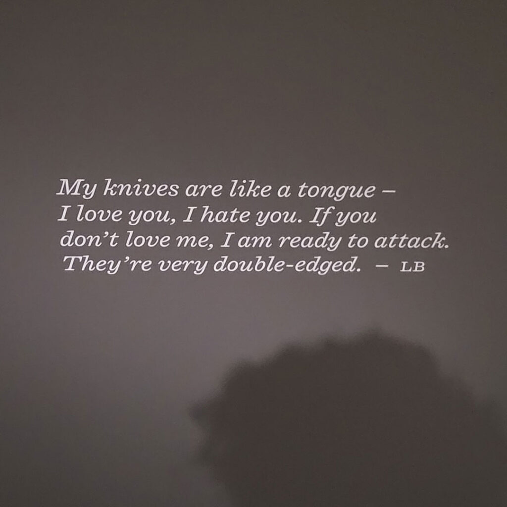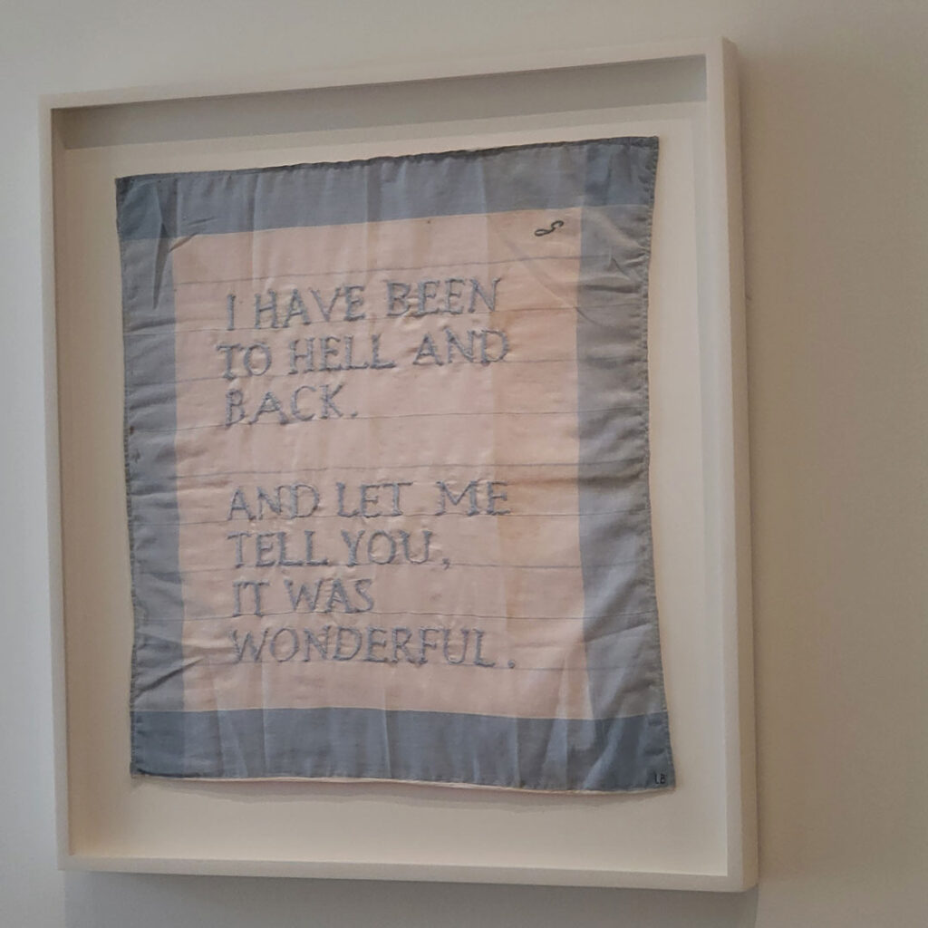 I got so tired by the end of the upstairs (“day”) version of her works, but Cathie and I had to soldier on because the guide-person at the door said we didn’t have time to stop for a coffee, because it would close in an hour and a half (wow, she doesn’t know how quickly we look at things, also, how quickly we can coffee). So we did the Tank stuff (“night”) as well, and then had the coffee (iced chocolate – it was a very hot day).