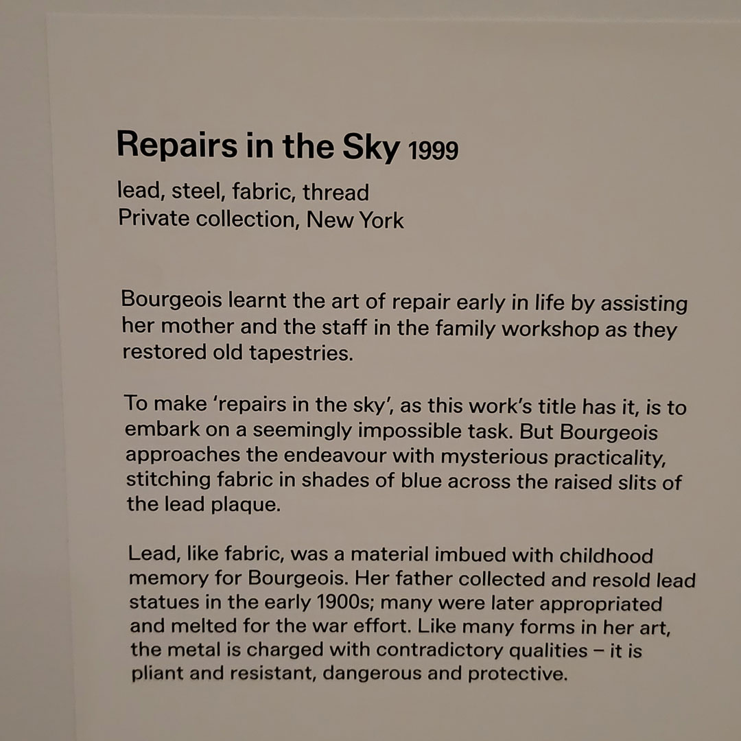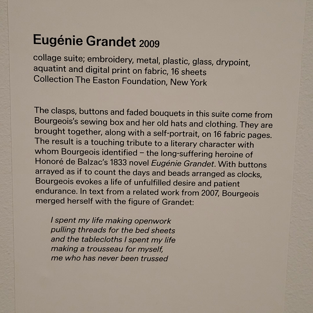 AGNSW has Louise Bourgeois – her entire life was spent making (except for 11 years of introspection in psycho analysis, so go figure).
