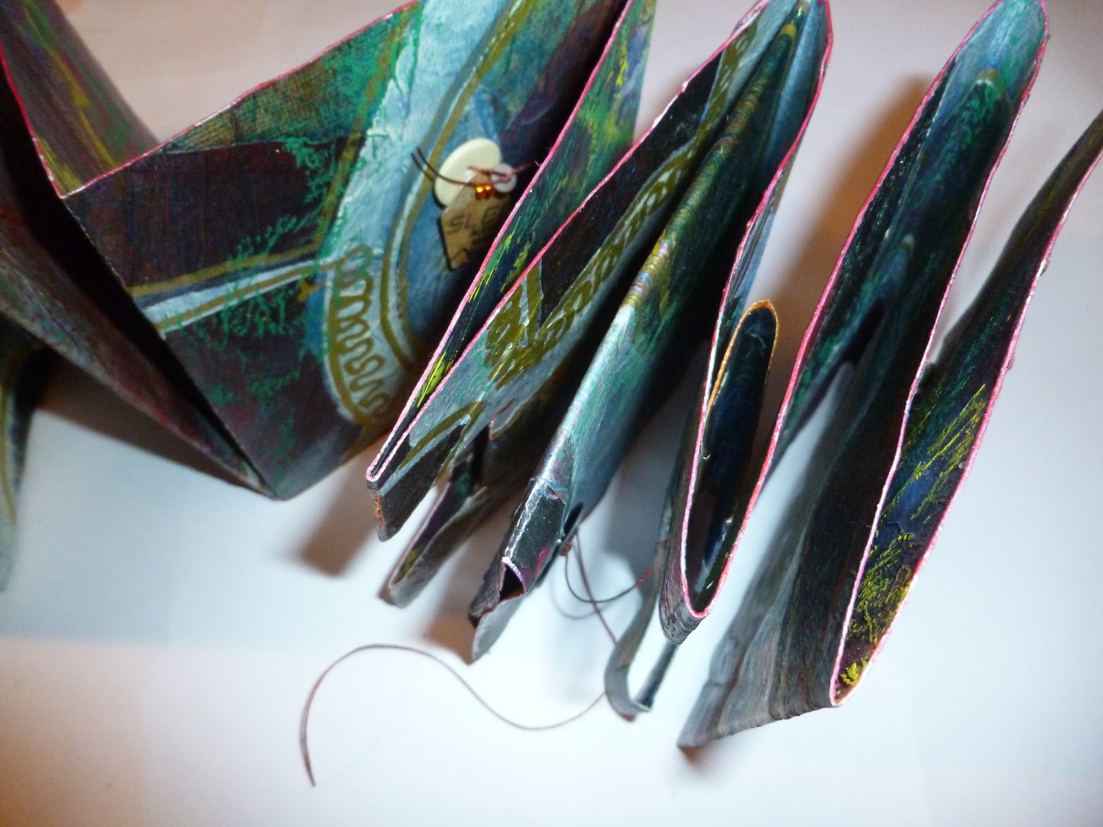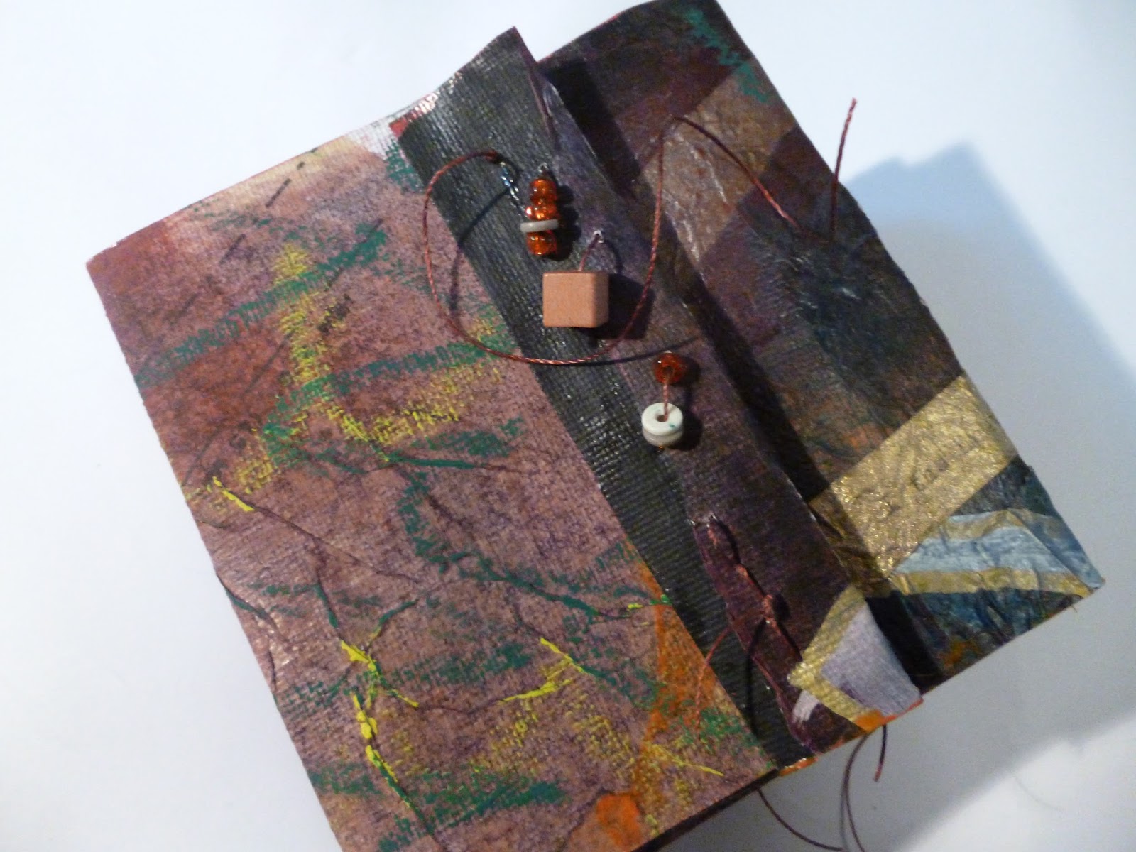 I used letraset sticker letters to put the W.B. Yeats poem The Cloths of Heaven. Also cut some windows in and added some beads