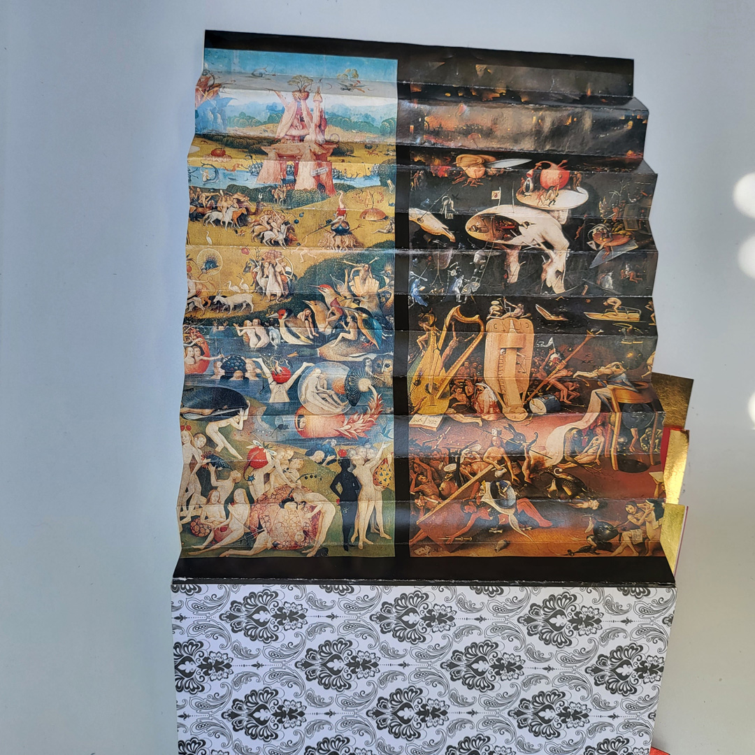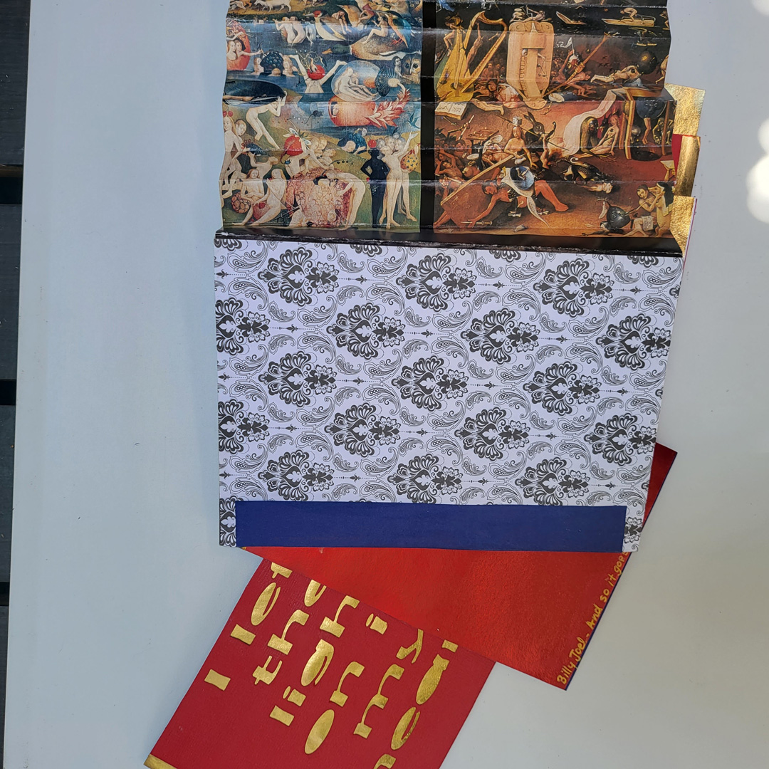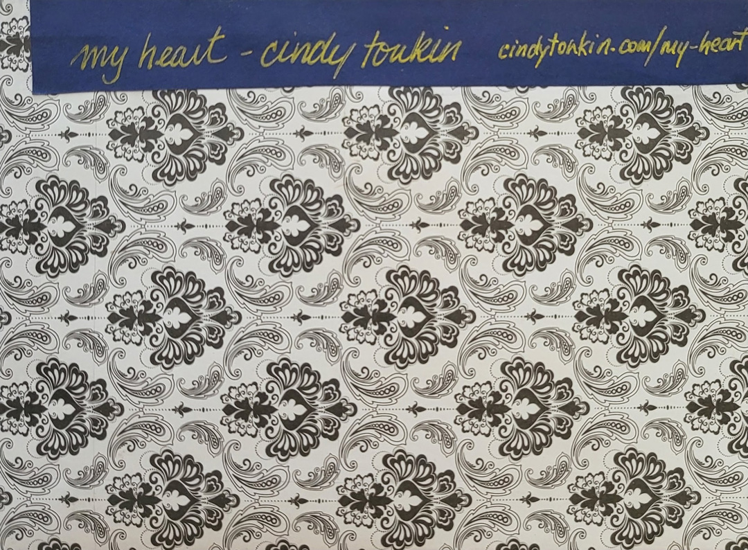 The paisley cardboard I bought in the late 90s at officeworks – make-your-own business cards. This was before I started making art, so it was both a bid to have cheap business cards and a bid to be a little creative. Now no one uses cards and i have more money to buy business cards anyway, so it’s just paper with perforations in it)