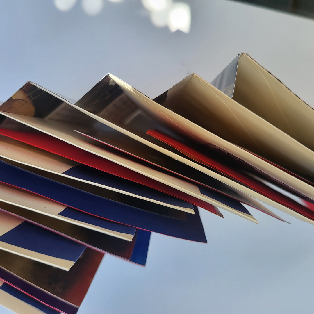 It consists of a concertina with pre-made envelopes on each fold – essentially a single flag where the flags are envelopes.