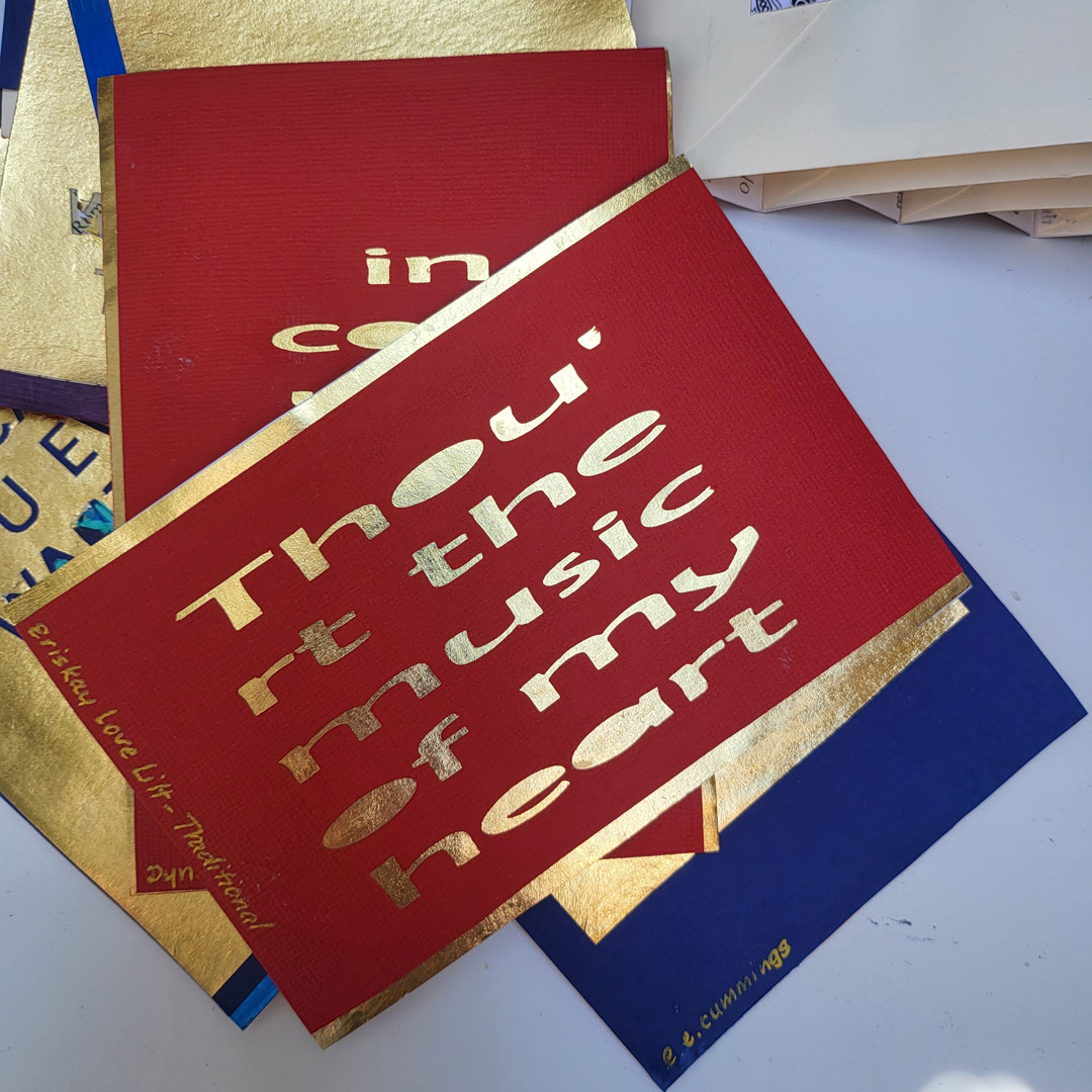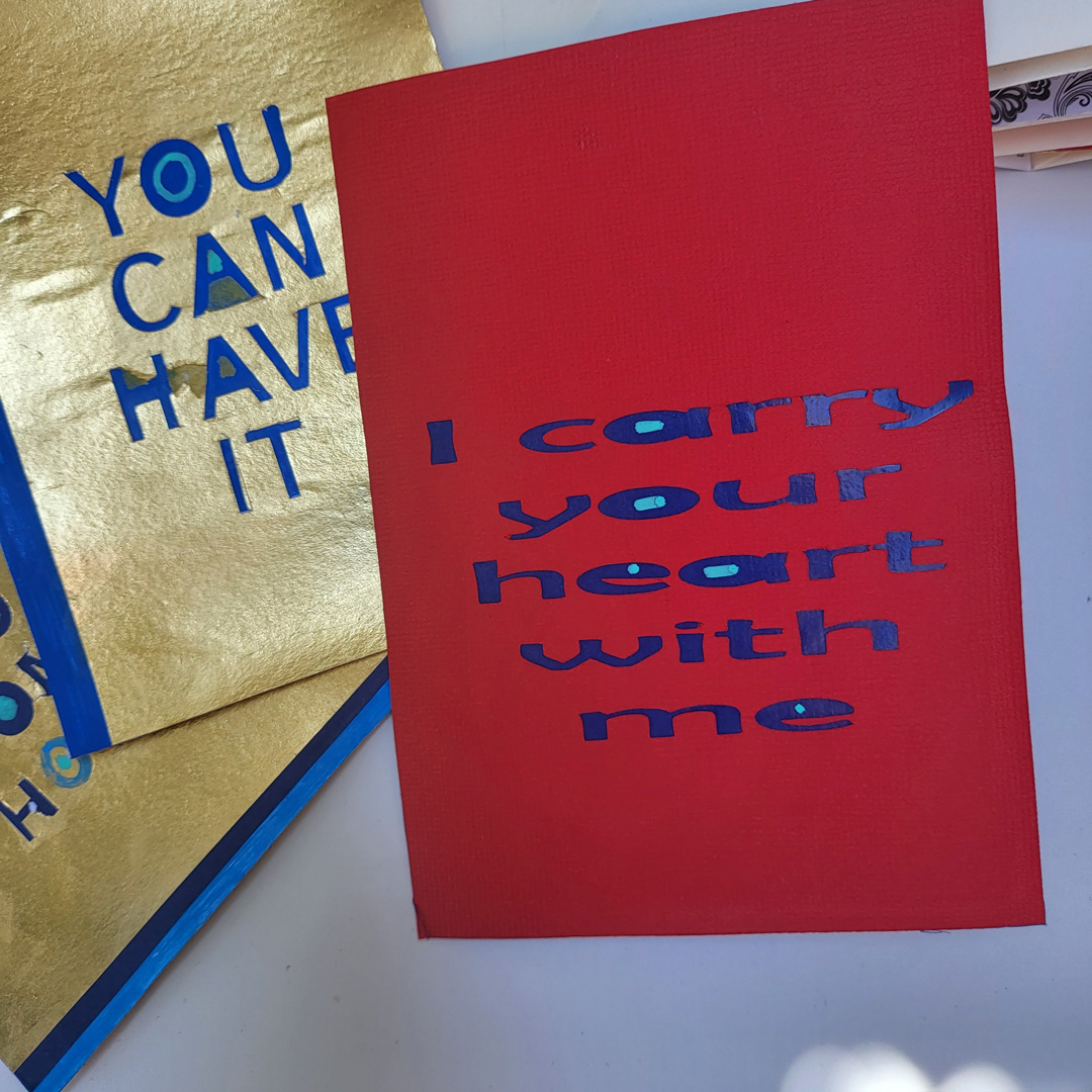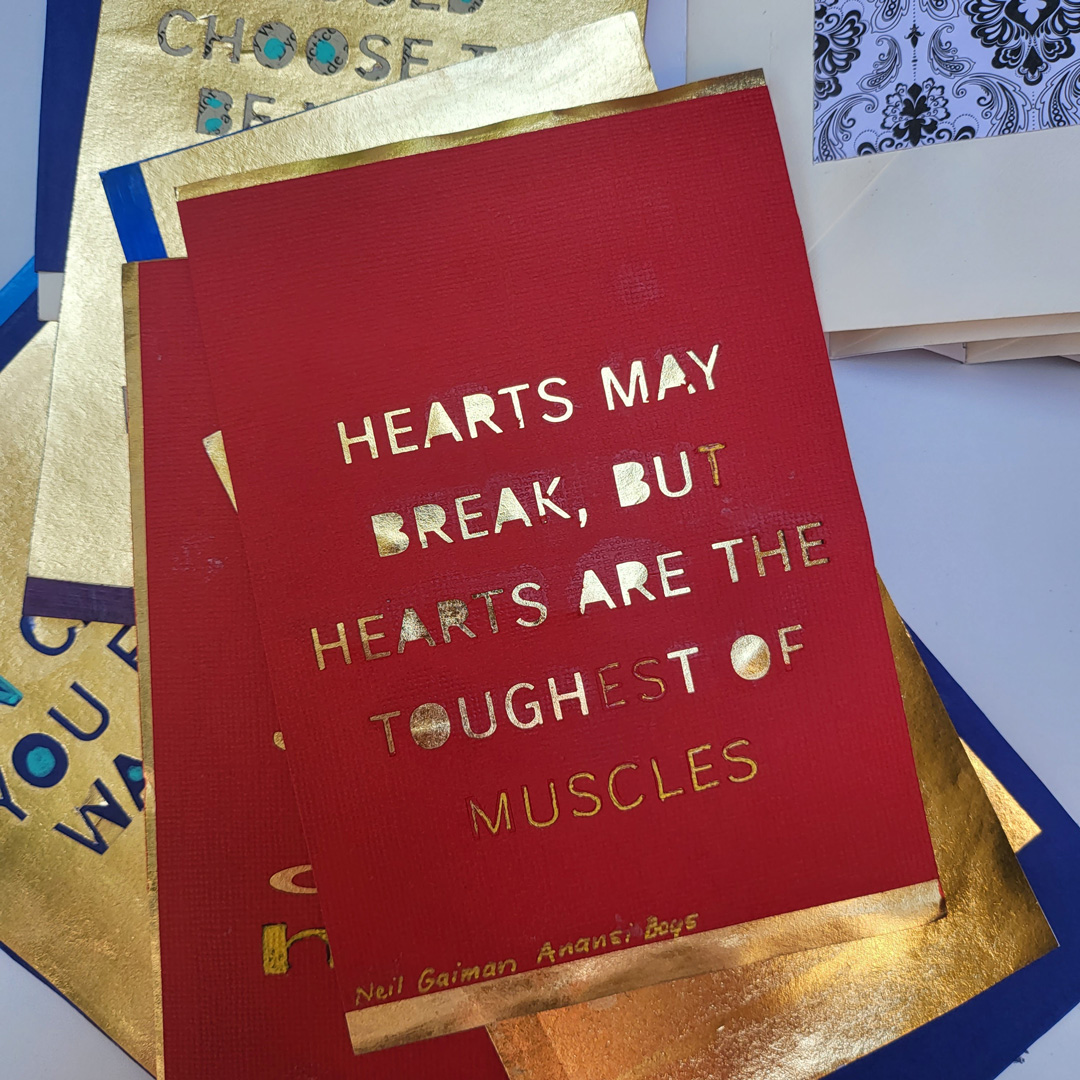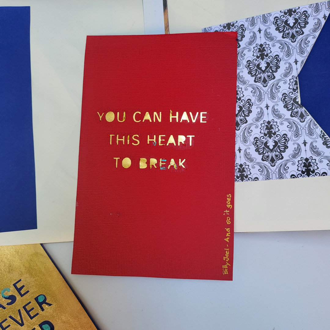 Inside each envelope is a quote from a poem or song or book, each about hearts. The inserts are double sided