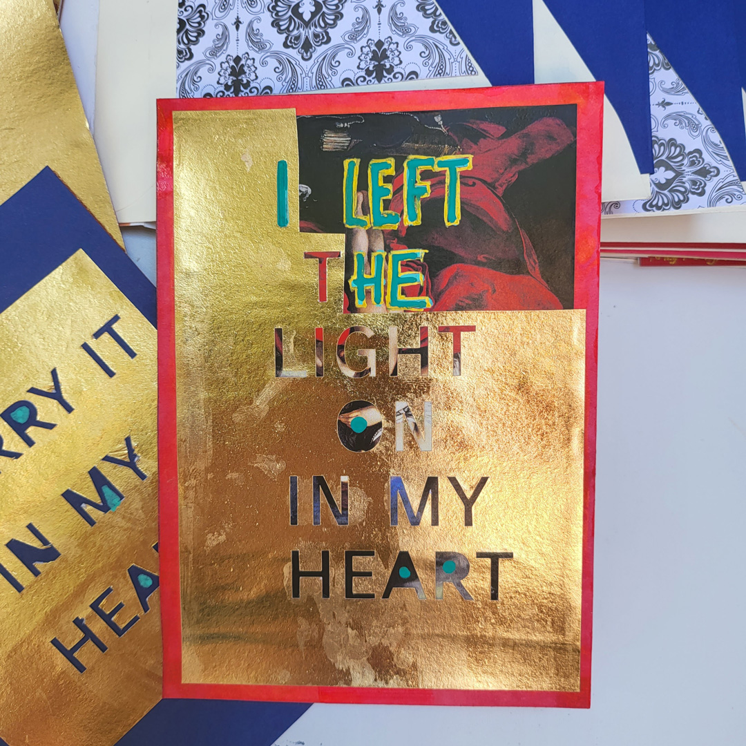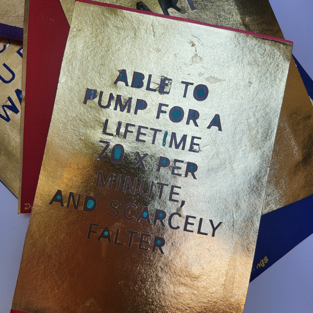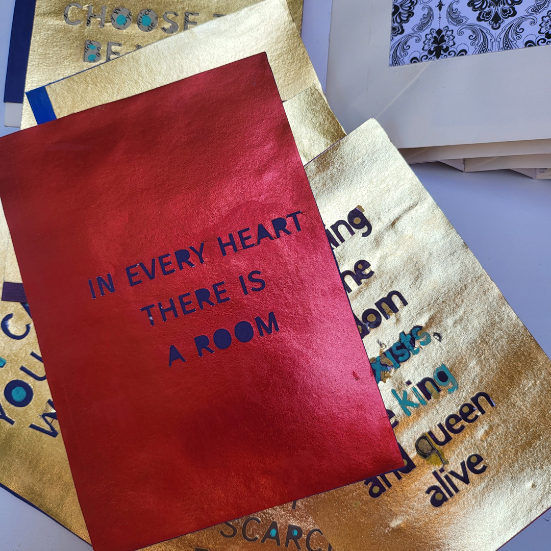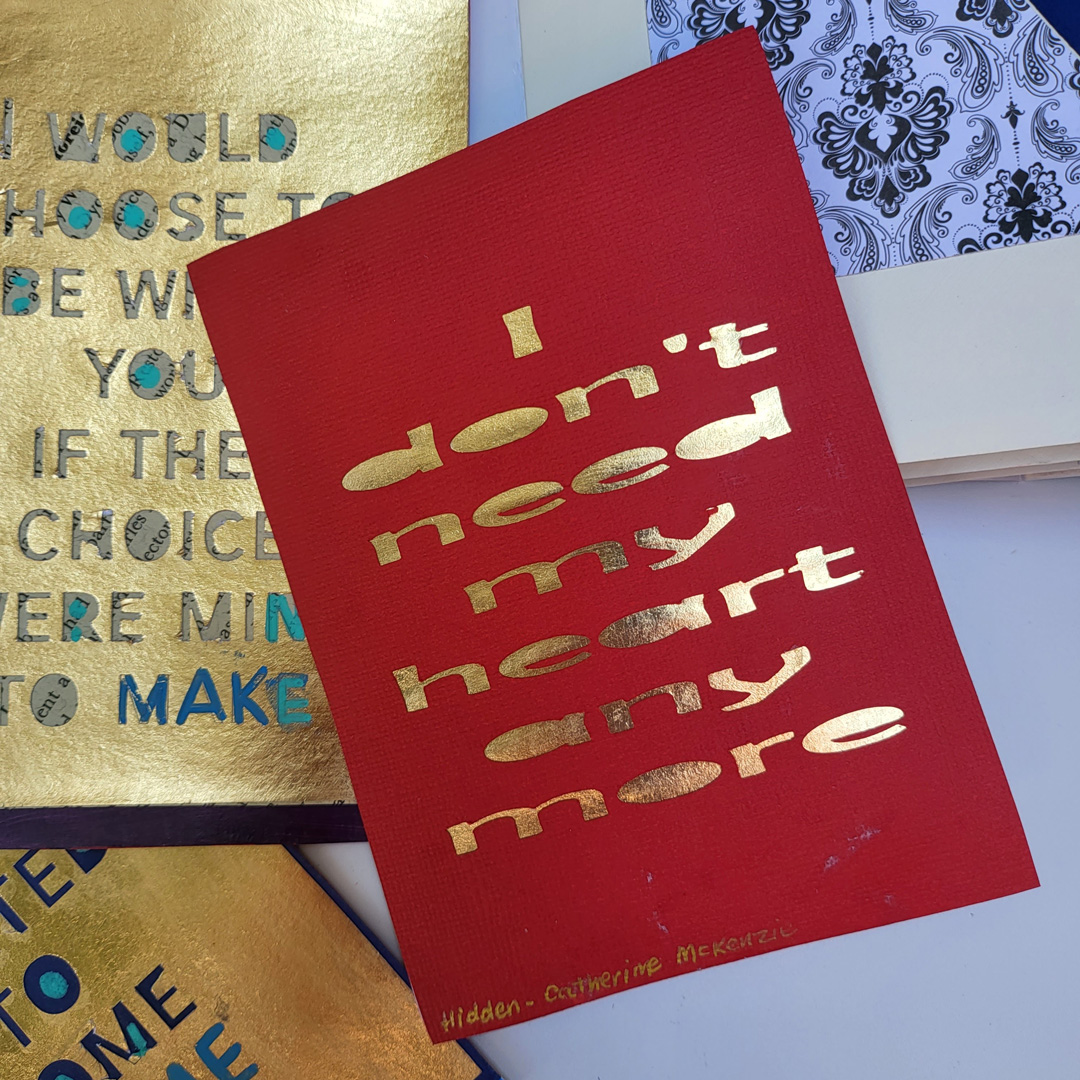 Inside each envelope is a quote from a poem or song or book, each about hearts. The inserts are double sided