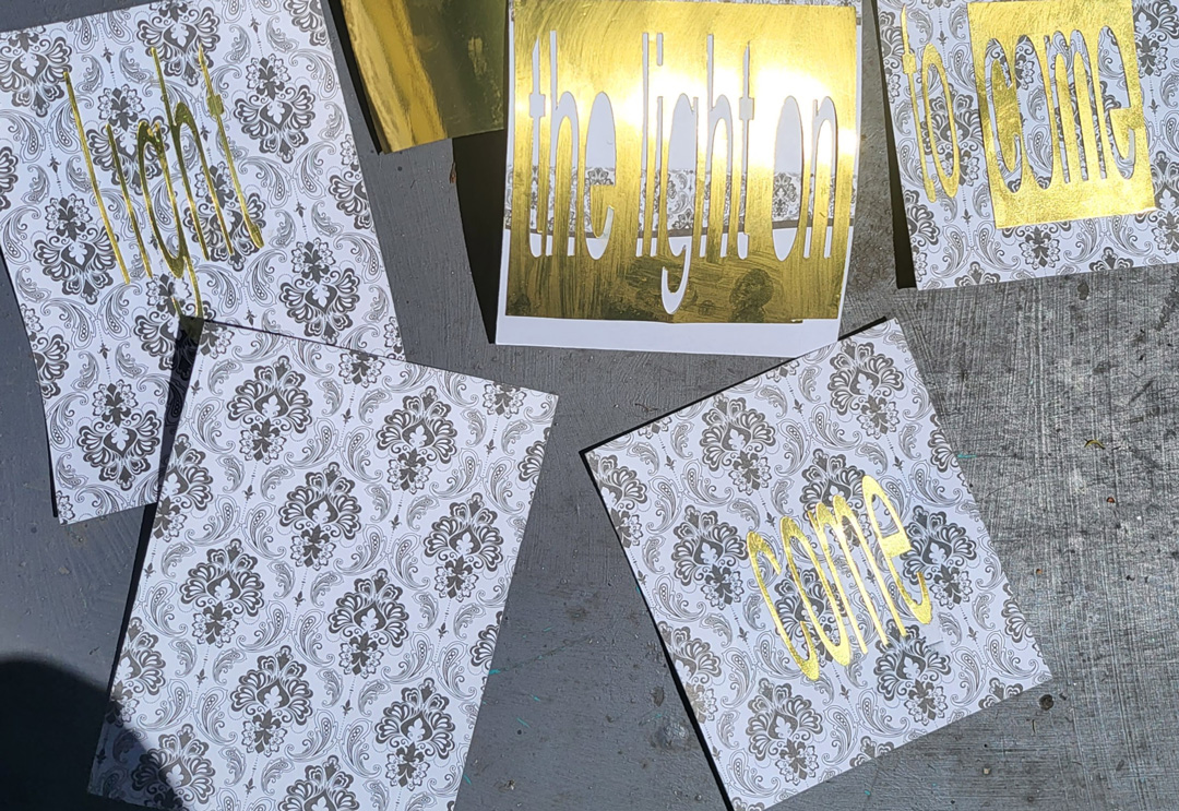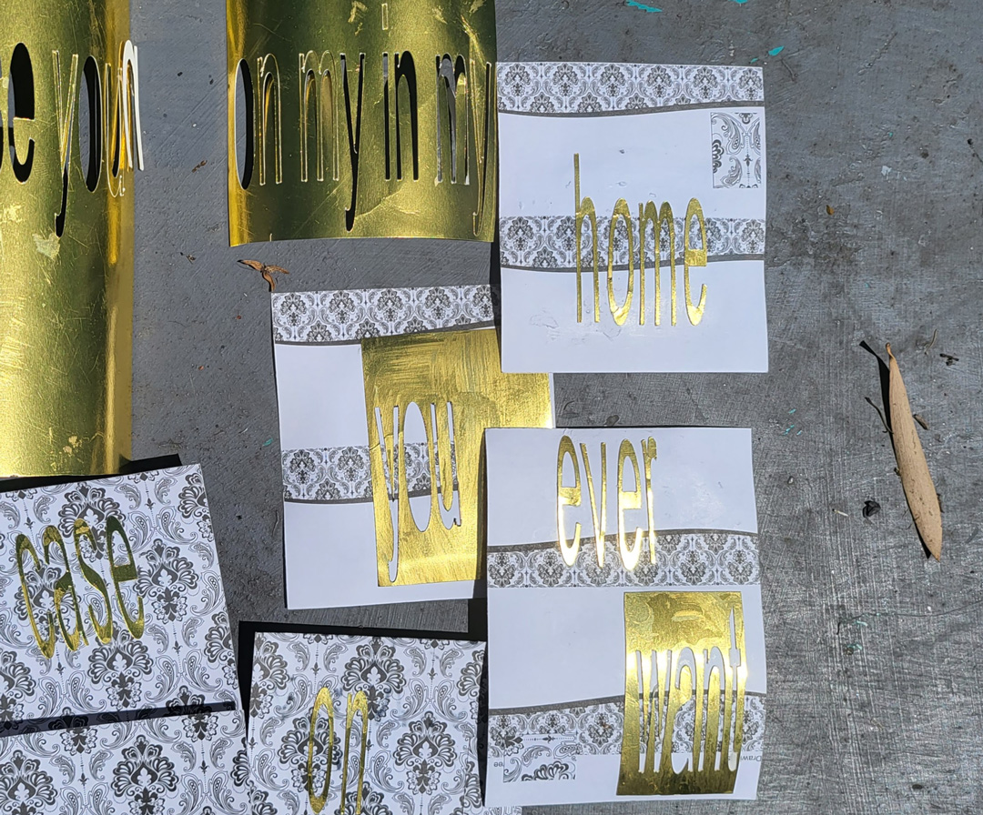 i know this, but i forget it, the cricut cut letters are more useful in negative space, gluing on individual letters is never smooth, never aligned and infinitely slow from idea to execution if it works at all, with my strengths and weaknesses, i know that, yet still i visualise sticking on the letters with too many small fonts!