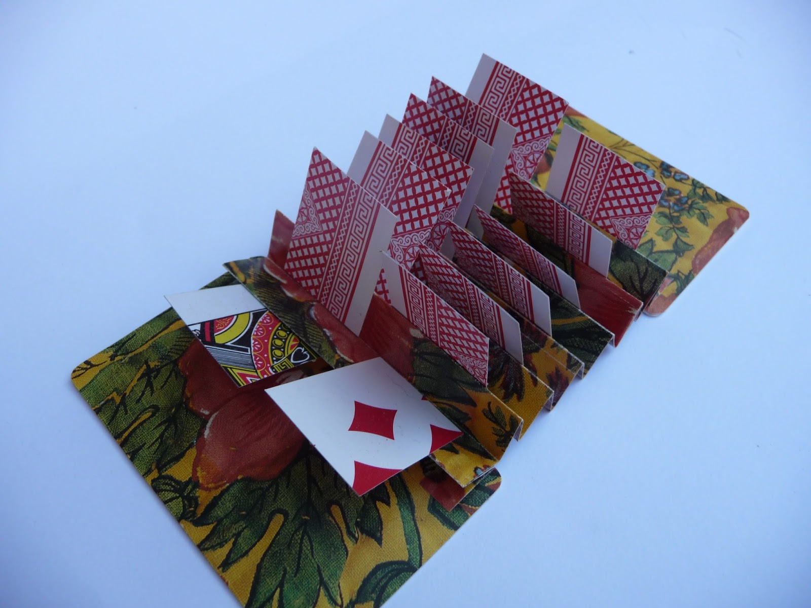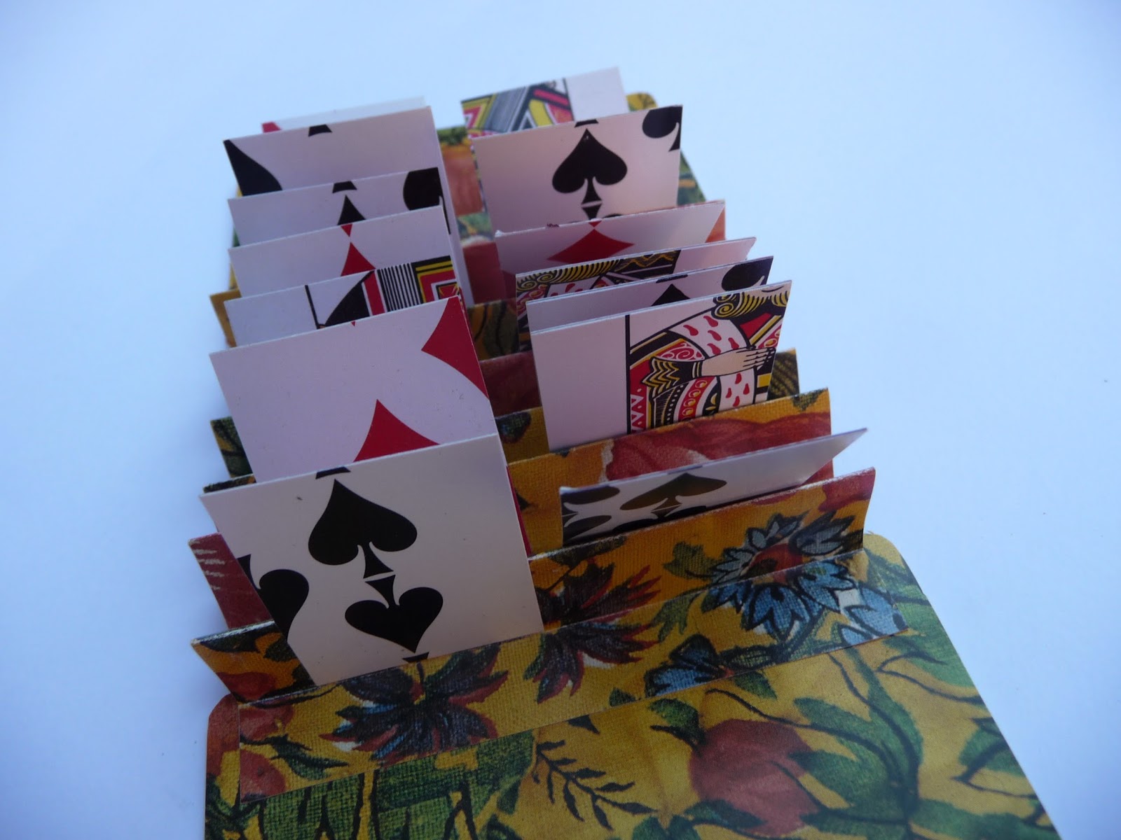 Cards from a deck of cards, with a william morris pattern, when folded closed about 5 x 3cm. probably around 2010