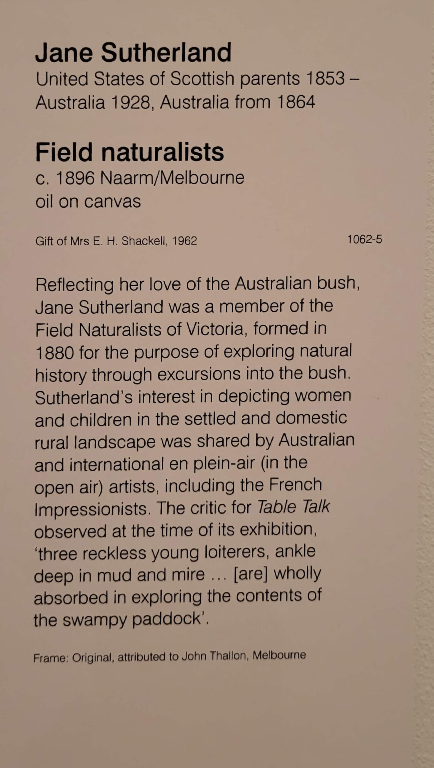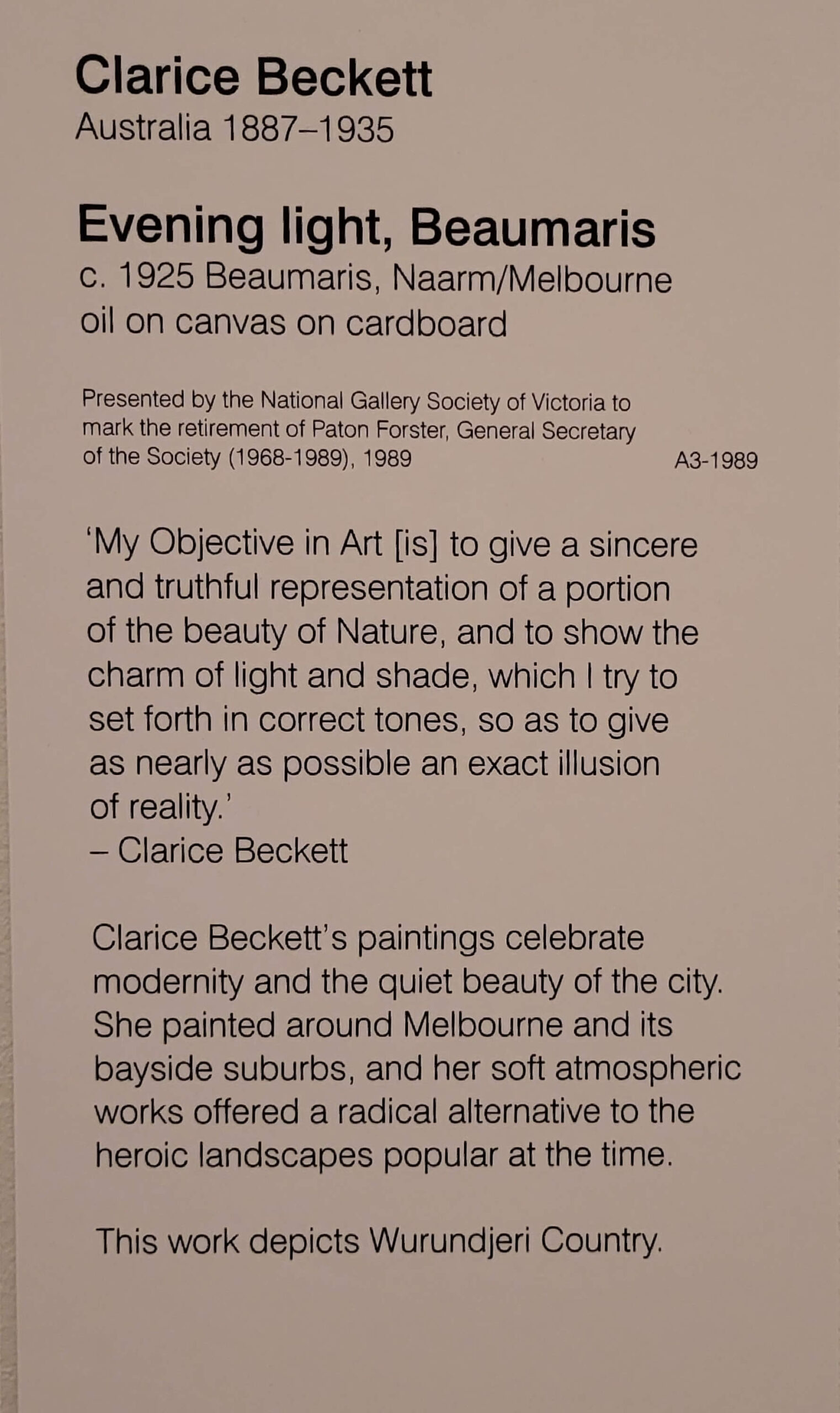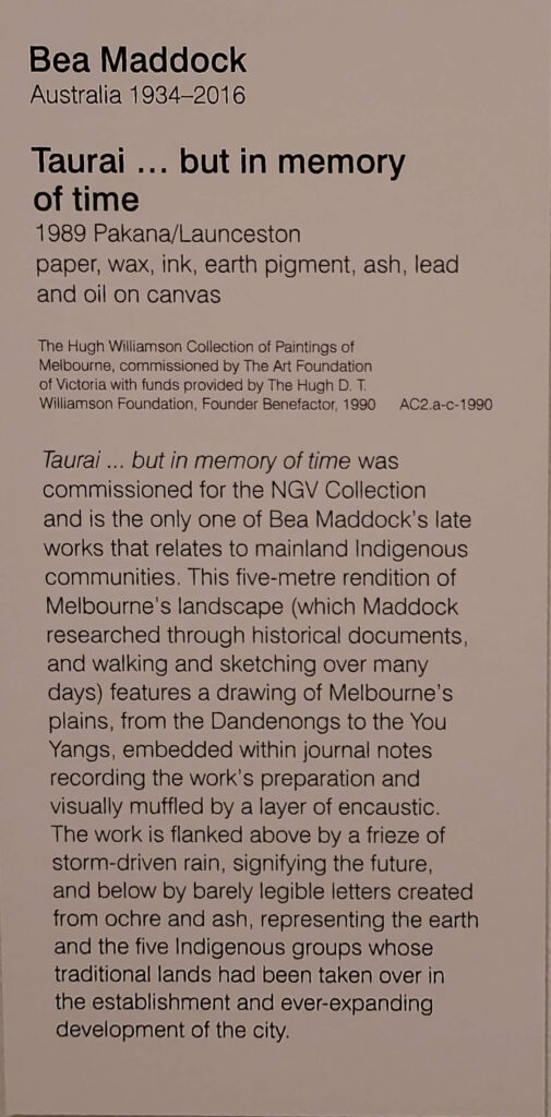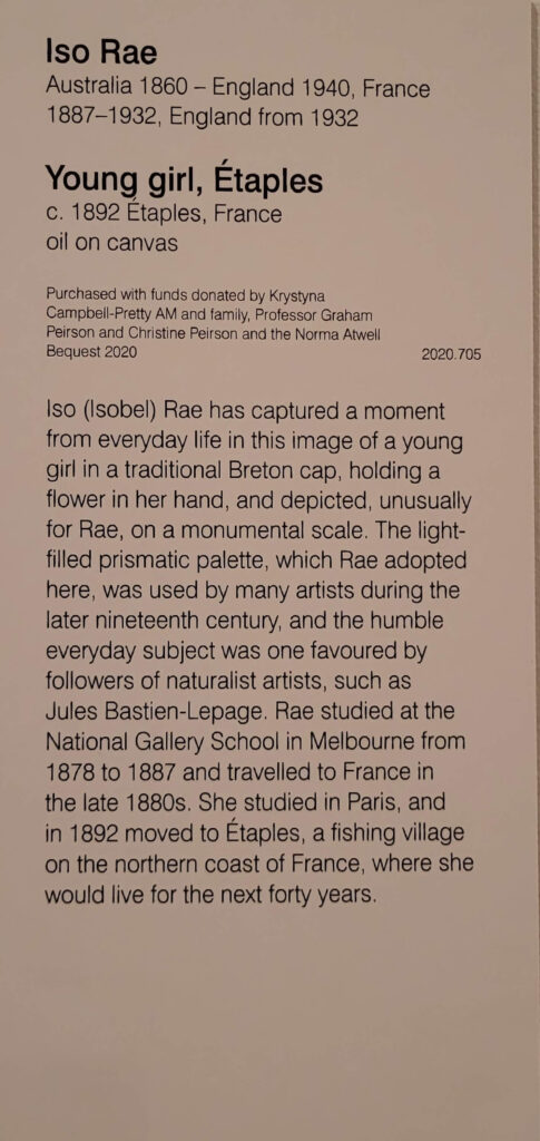 Most of the things I absolutely love – Fred Williams’, the Brett Whitely, were still there, and there was a lot more women’s art in evidence (yay). So most of my pix are of women’s art, most of which I hadn’t seen before (maybe some of the Clarice Beckett, and Ethel Carrick but not Yvonne Audette, Mary Swanzy, Iso Rae, Emma Minnie Boyd and more.. where have they been (don’t answer that question). Anyway, lovely to see them.