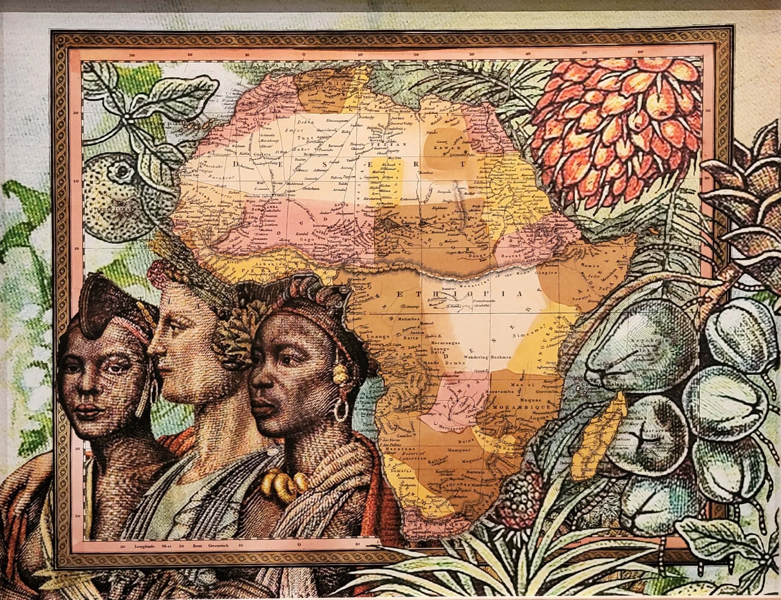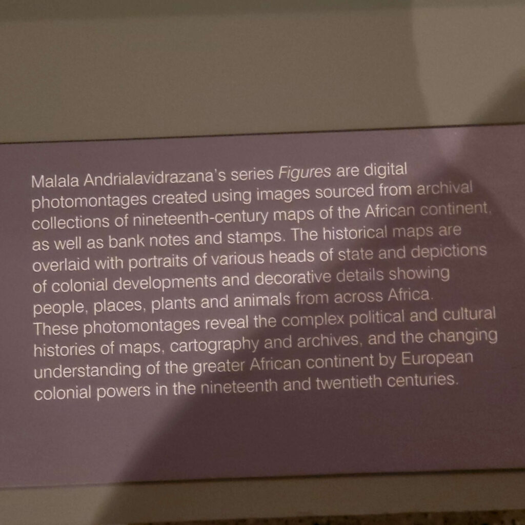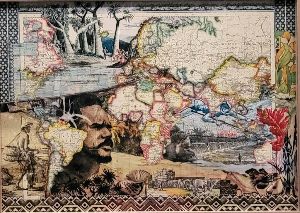 I photographed Malala Andrialavidrazana’s two pieces mostly to remind myself that I can use all of the maps that Sandy gave me years ago as the background for a piece (like I did here in 2007. The original i can’t find, only a slider I made to put on the website, so here it is: