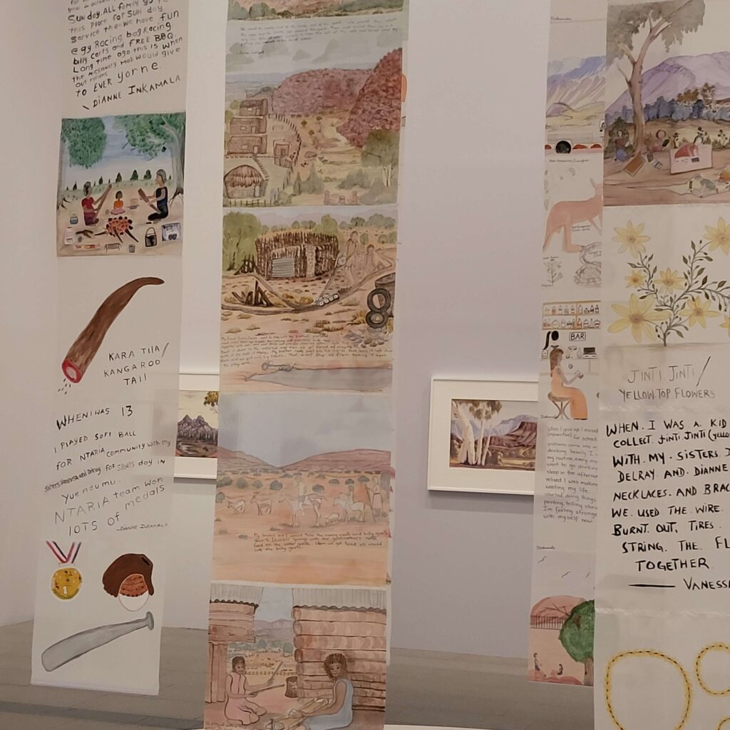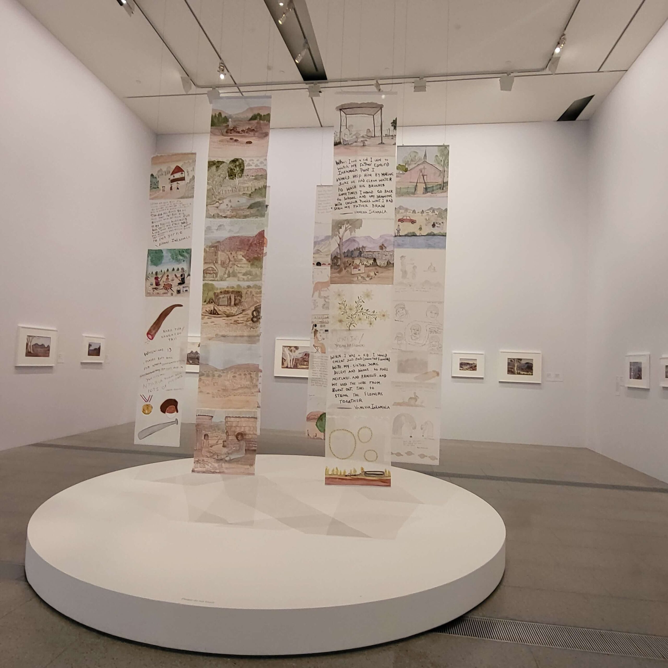 there was also a tiny Namatjira workshop / works inspired by / done by his descendants, and what I liked was the banners dropping from the ceiling.