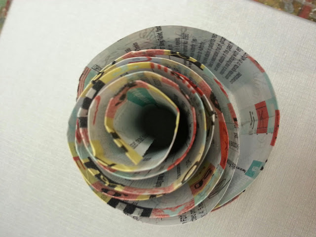 Tower-like scroll created from expired pharmaceutical prescriptions and pretty masking tape.12cm round 10cm high