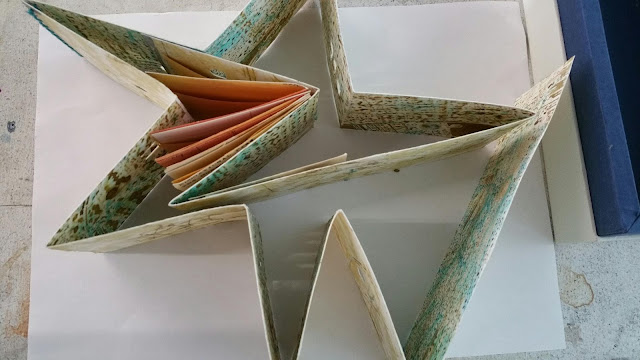 Going to fill this 2 compartment wine box with tiny books.I imagine it will take some time.Used some encaustic pages today.