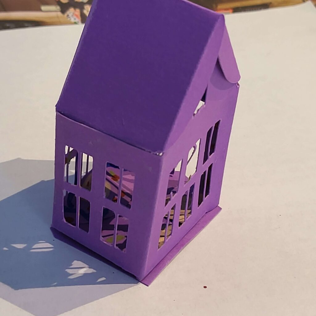 In the throes of making a golden one from so old card from Reena, with contrasting roof / floor. Have set up the pattern to cut 5 houses from a 30×30 card, so that becomes a different idea.