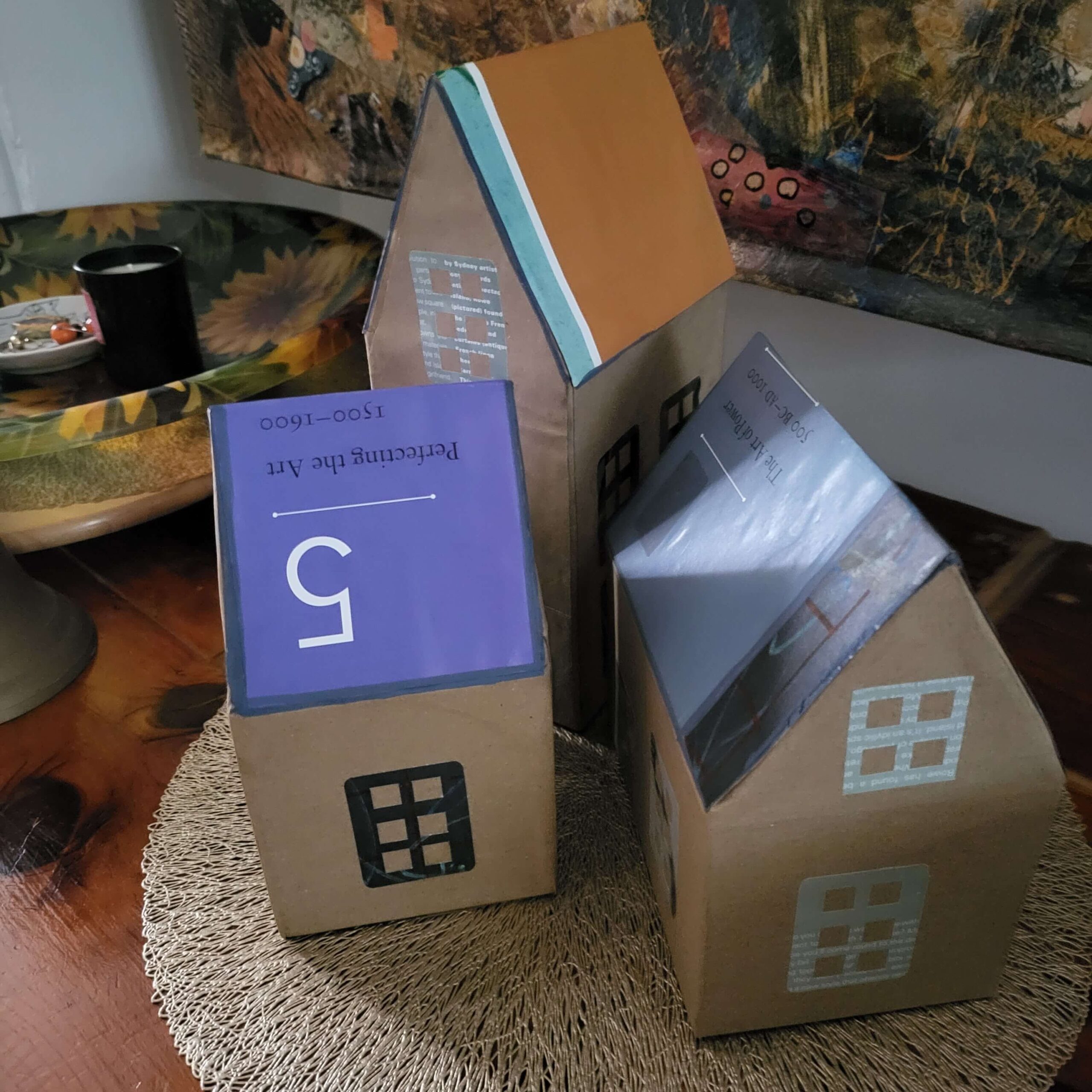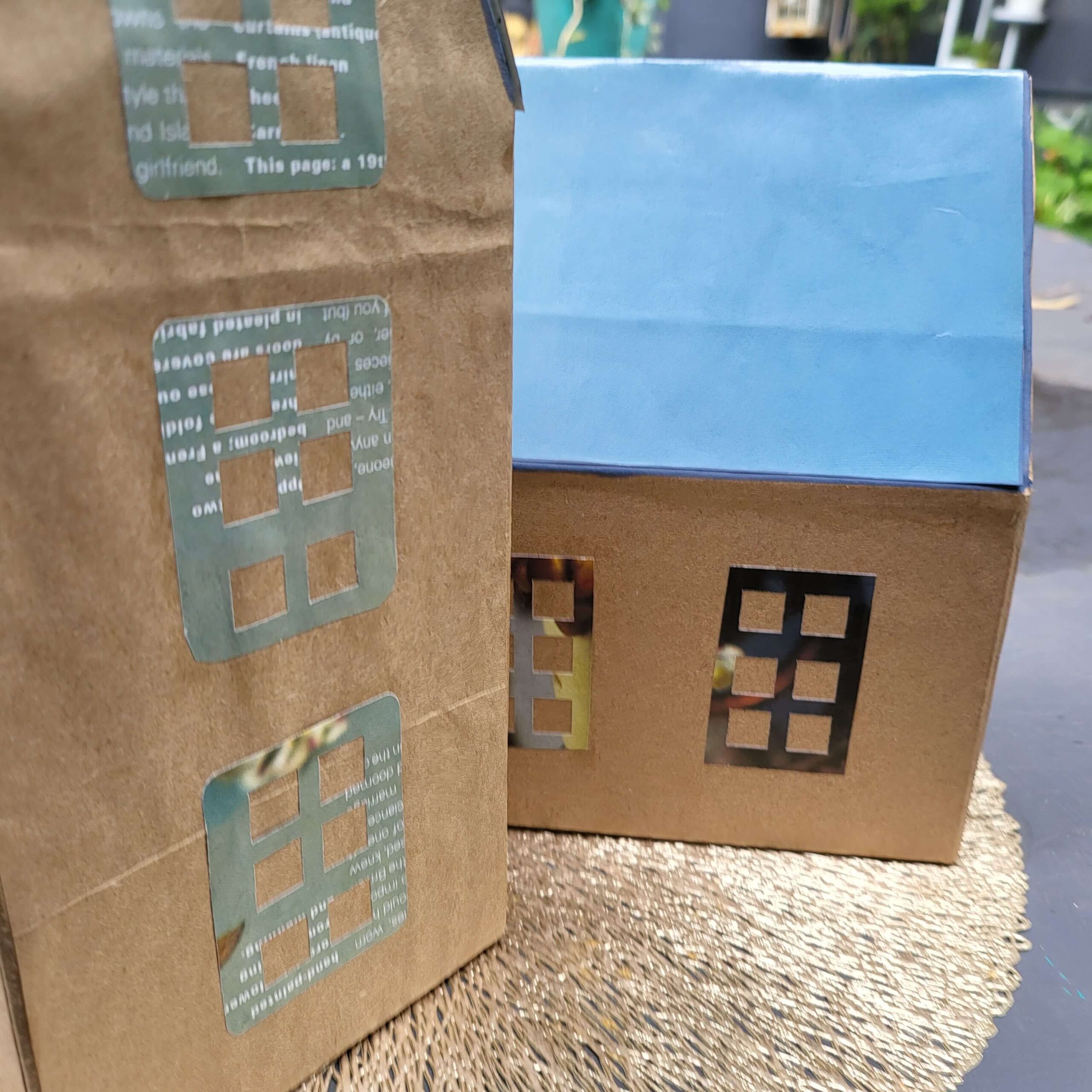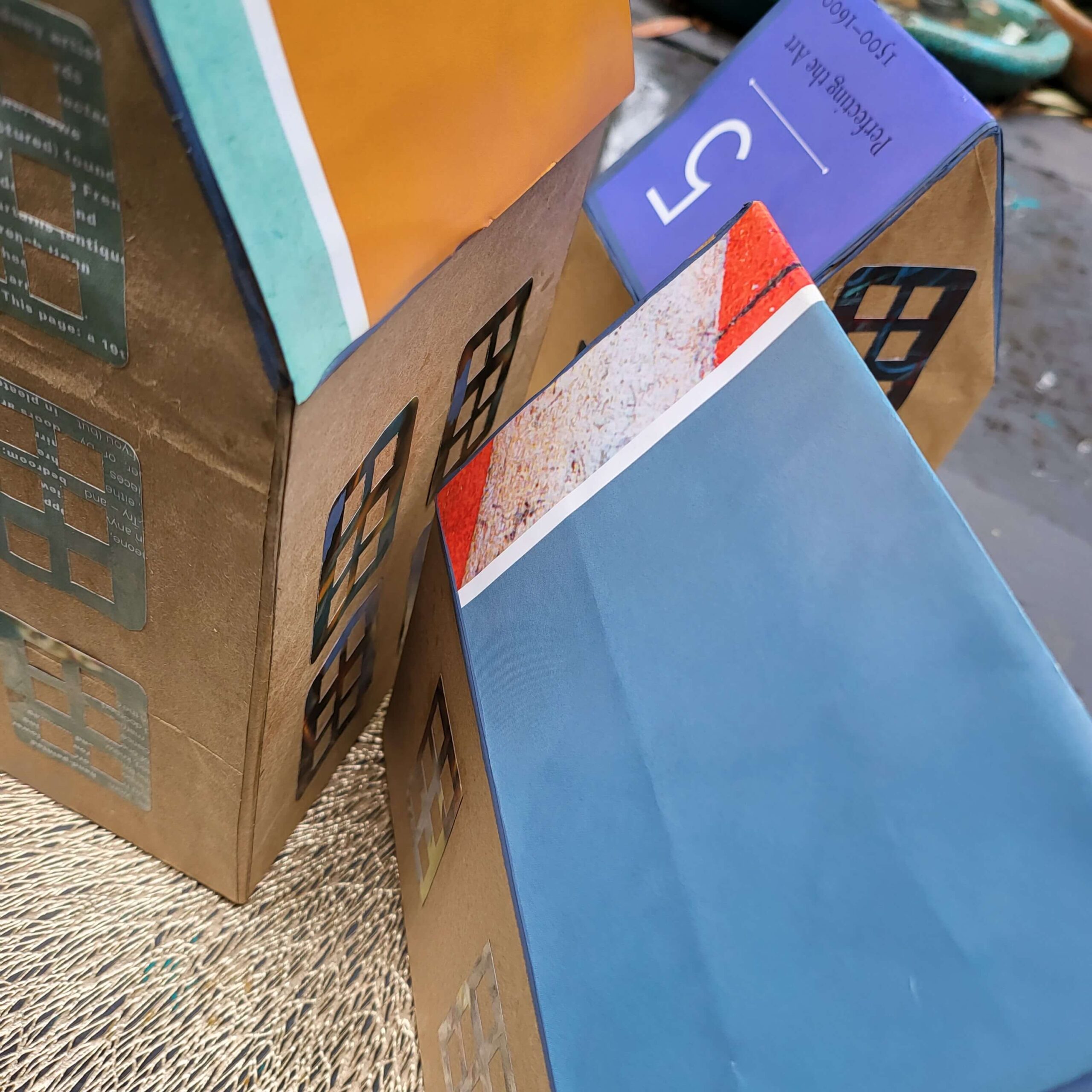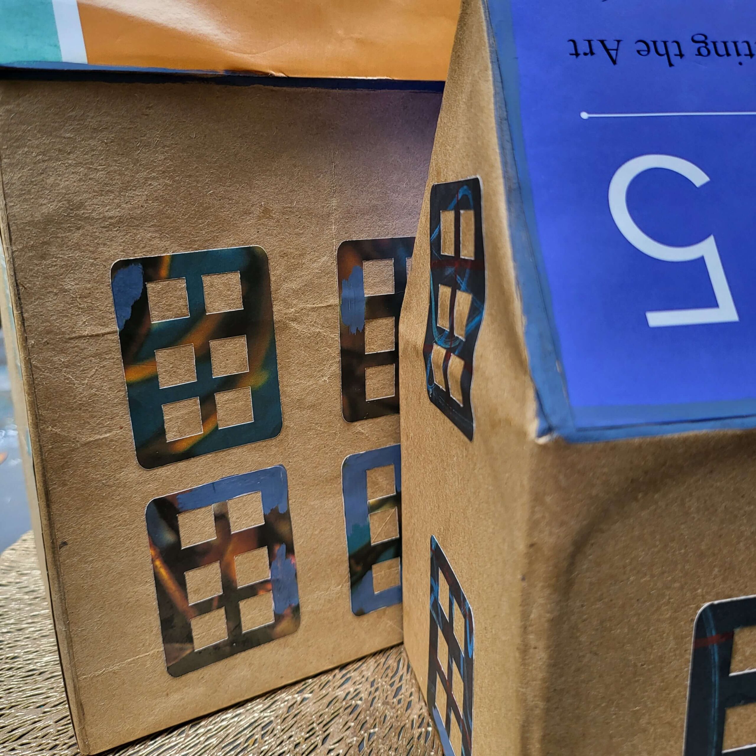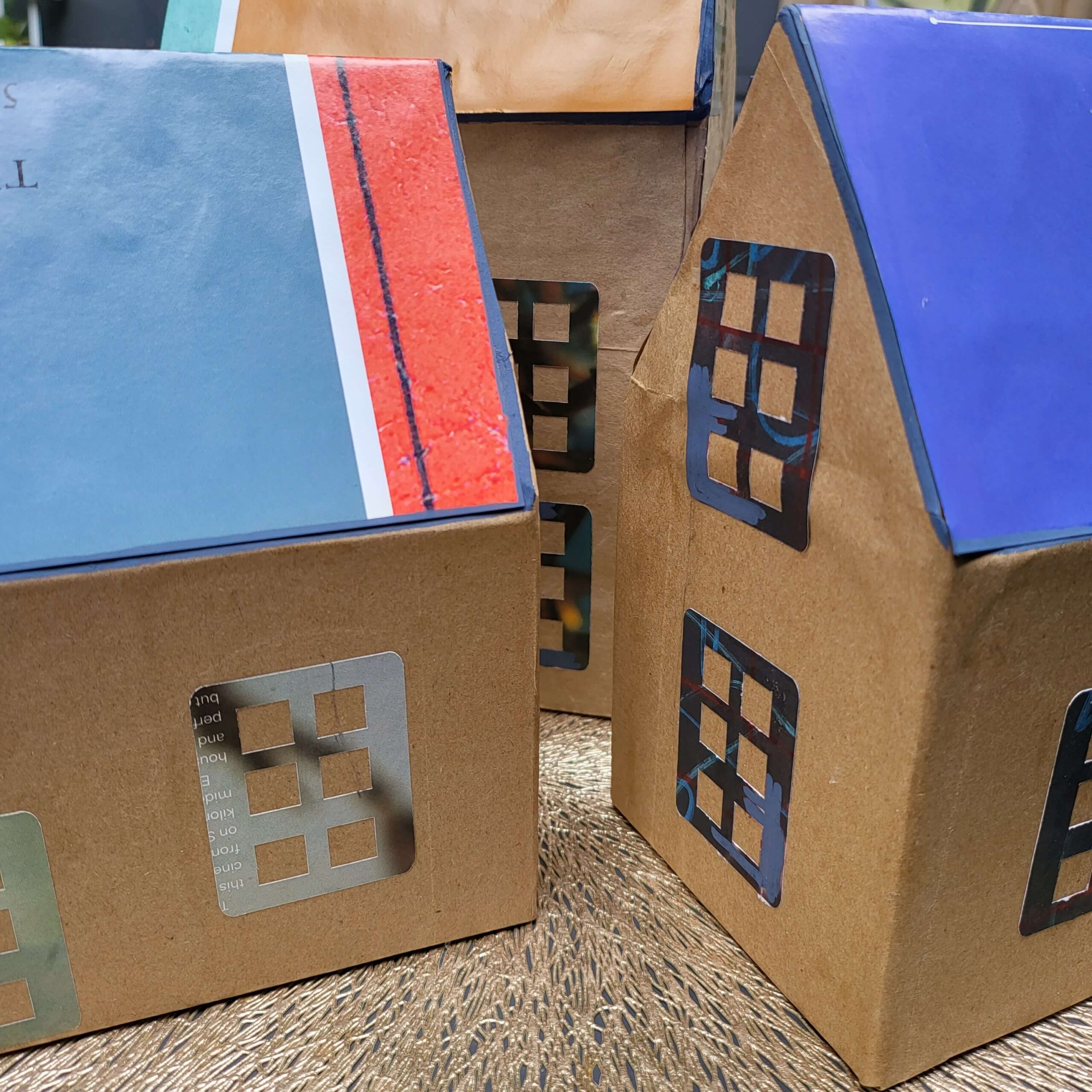 This weekend I made 3 small houses out of 2 x Alexa boxes and a pet food box (for the size more than anything else).